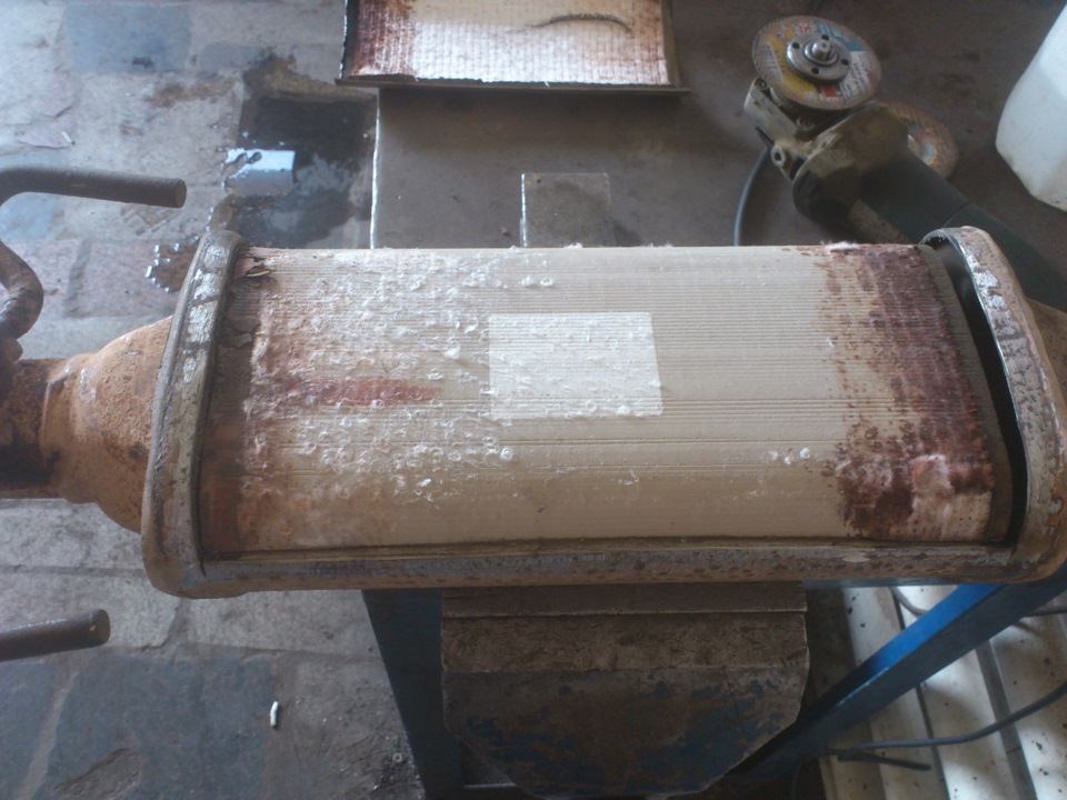 корпус фільтра розрізають болгаркою, щоб вилучити повністю або шматками, залежно від ступеня пошкоджень;